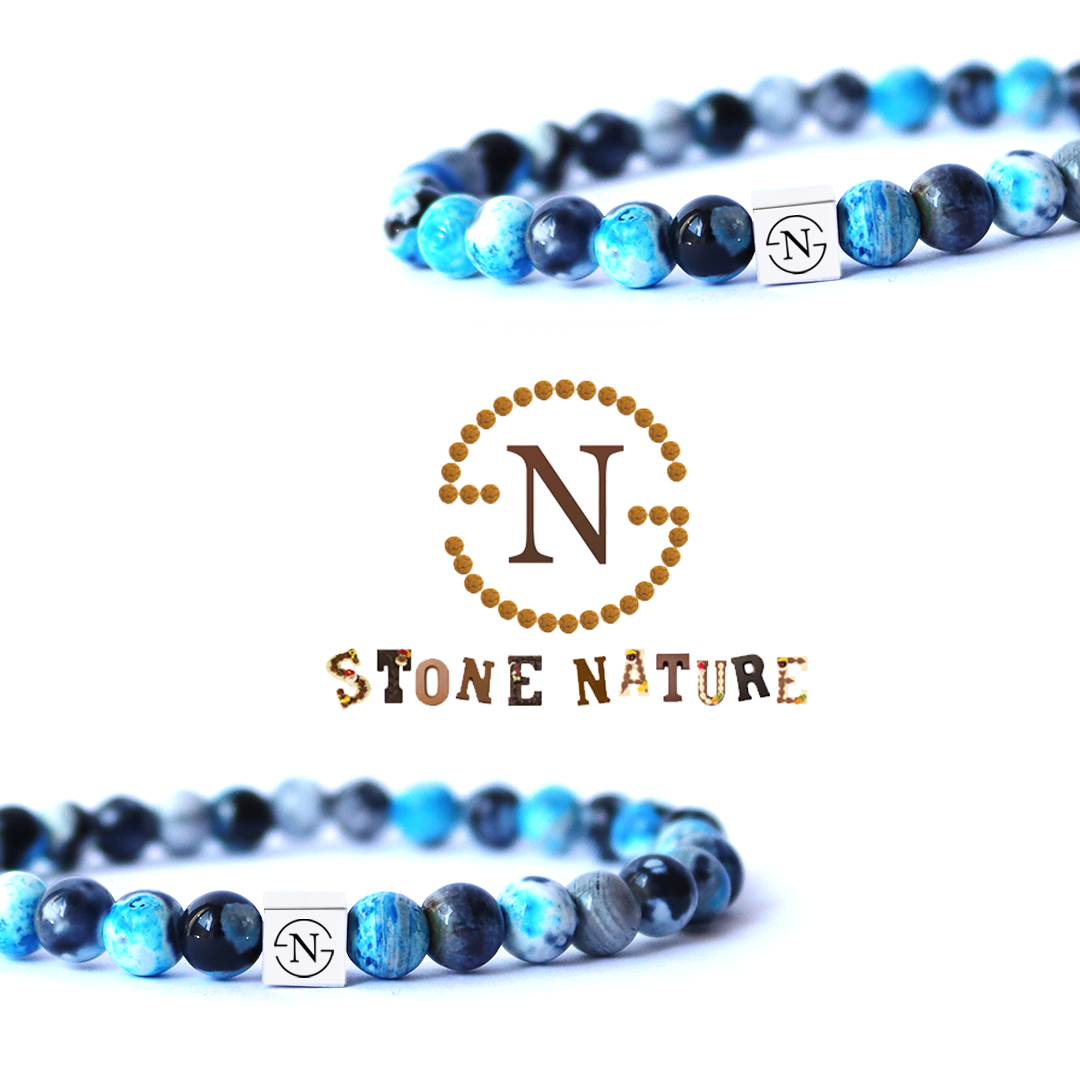 Kleurijke natuursteen armband gemaakt van 6mm agaat kralen. De mooie kleurencombinatie van blauw tinten geeft jou gelijk dat zomer gevoel waar je zo naar verlangd. De vierkante Stainless Steel bedel, met het Stone Nature logo, geeft de armband een tijdloos uiterlijk.Je kunt de armband in elke gewenste maat bij ons bestellen.Het sieraad laat zich prachtig combineren met een uni accessoire uit onze collectie.Werking Agaat:Agaat is een aardende, stabiliserende en beschermende steen.De steen werkt kalmerend, laat je veilig voelen en zorgt voor zowel geestelijke als emotionele rust en balans.Het helpt je om doelen te stellen voor jezelf en hier naar toe te werken. Hierdoor stimuleert het je persoonlijke groei en ontwikkeling.Fysiek heeft Agaat een positieve werking op je immuunsysteem, zenuwstelsel en zenuwpijn, spijsvertering, hart, de bloedvaten, ogen, maag, darmen en blaas.