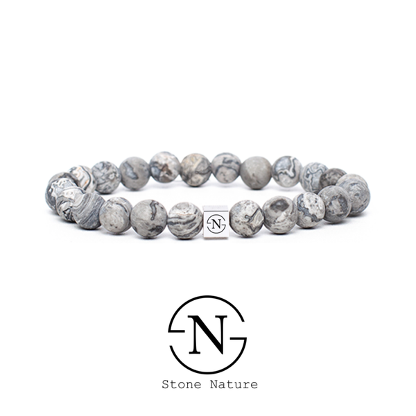 De mapstone dames armband is een van onze bestsellers! Het sieraad is gemaakt van 8mm mat grijze mapstone natuursteen kralen. De armband is een echte musthave voor iedere vrouw! De vierkante stainless steel bedel, met het Stone Nature logo, geeft de armband een tijdloos uiterlijk. De mapstone armband heeft verschillende tinten grijs. Hierdoor laat dit sieraad zich makkelijk combineren met andere armbanden uit onze collectie!