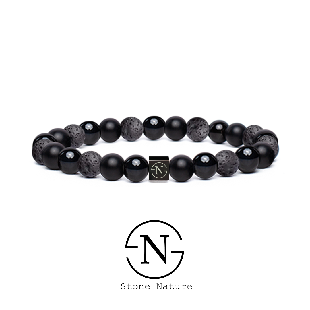 De stoere Triple Black heren armband is een prachtige combinatie van 8mm lava en mat/glimmende jade natuursteen kralen. Een echte MUSTHAVE voor iedere man!! De vierkante zwarte Stainless Steel bedel, met het Stone Nature logo, geeft de armband een stoer uiterlijk. De triple black armband laat zich door zijn veelzijdigheid makkelijk combineren met vele andere armbanden uit onze collectie!